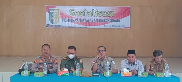 Sosialisasi Oleh Kabid Kesbangpol menyampaikan “Wawasan Kebangsaann lahir ketika bangsa Indonesia berjuang membebaskan diri dari segala bentuk penjajahan seperti penjajahan oleh Portugis, Belanda dan Jepang, perlunya wawasan dan pengetahuan kebangsaan untuk keutuhan persatuan dan kesatuan bangsa, wawasan Kebangsaan adalah cara pandang dan sikap bangsa Indonesia mengenai diri dan lingkungan dengan mengutamakan persatuan dan kesatuan bangsa,”