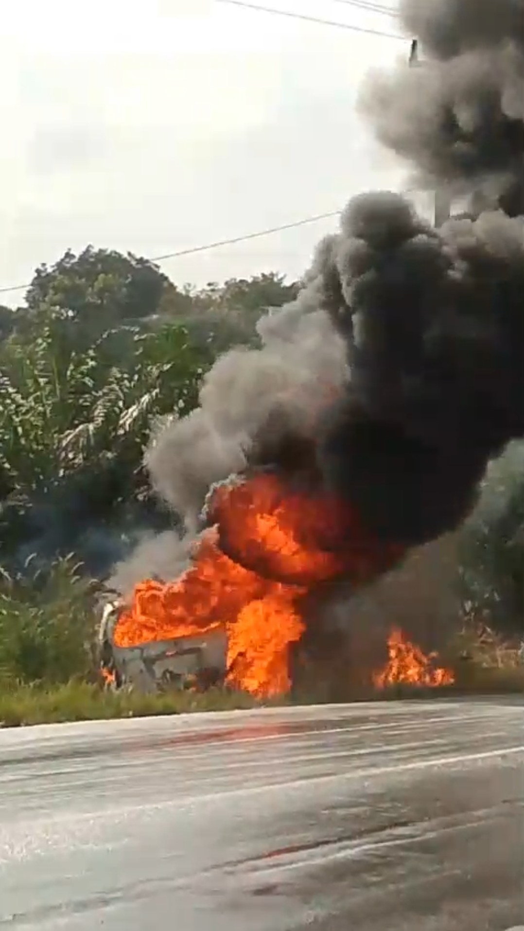 “sopir tangan nya kena api, di sebabkan mau ngambil trigen minyak didalam mobilnya bg”, lanjut warga yang tidak mau namanya di publis.
