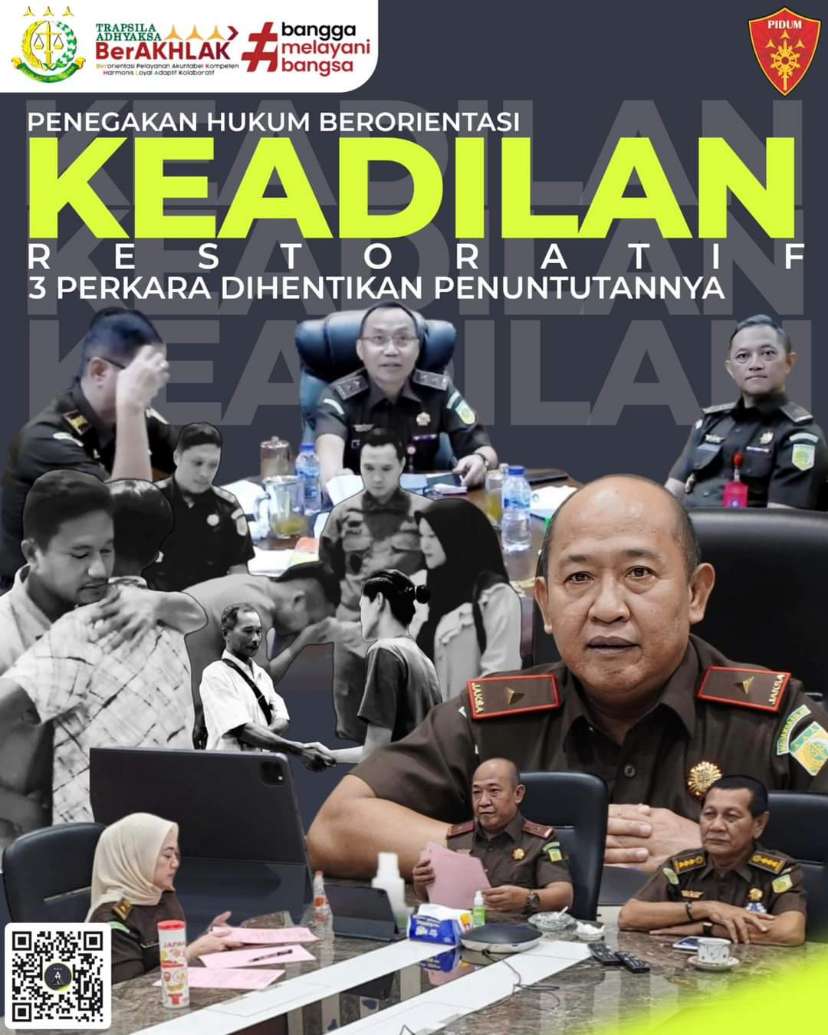 Bahwa pengajuan 3 (tiga) perkara untuk dilakukan penghentian penuntutan berdasarkan keadilan Restoratif Justice disetujui oleh Jaksa Agung Muda Tindak Pidana Umum Kejaksaan Agung RI dengan pertimbangan telah memenuhi Pasal 5 Peraturan Kejaksaan Republik Indonesia Nomor : 15 Tahun 2020 dan Surat Edaran Jampidum Nomor : 01/E/EJP/02/2022 Tanggal 10 Februari 2022 tentang Pelaksanaan Penghentian Penuntutan Berdasarkan Keadilan Restoratif sebagai perwujudan kepastian hukum.