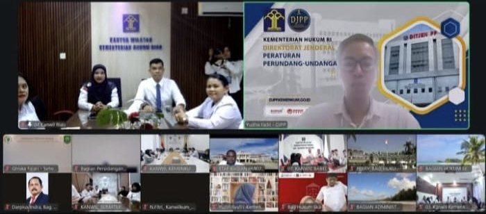 Kegiatan ini dihadiri langsung oleh Kepala Kantor Wilayah Kementerian Hukum Riau, Rudy Hendra Pakpahan, bersama Kadiv P3H serta jajaran JFT Perancang Peraturan Perundang-undangan.