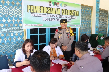 Pemeriksaan Kesehatan Personil Pengamanan TPS Operasi Mantap Brata Pemilu 2024 meliputi pengecekan dan Pemeriksaan terhadap kesehatan personil yang akan melakukan Pengamanan jalannya Pemilu 2024.