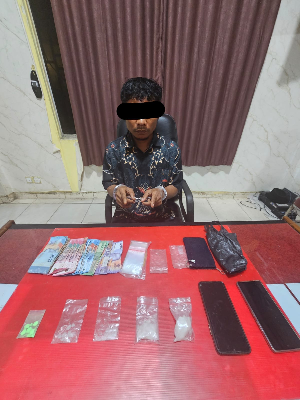 Selain narkotika, petugas juga mengamankan sejumlah barang bukti lainnya, antara lain 1 (satu) bal plastik klip bening kosong, 2 (dua) buah plastik klip bening kosong ukuran sedang, 2 (dua) buah plastik klip bening kosong ukuran kecil, 1 (satu) buah plastik hitam kosong, 1 (satu) unit handphone merk TECNO POVA warna biru, 1 (satu) unit handphone merk REALME warna biru tua