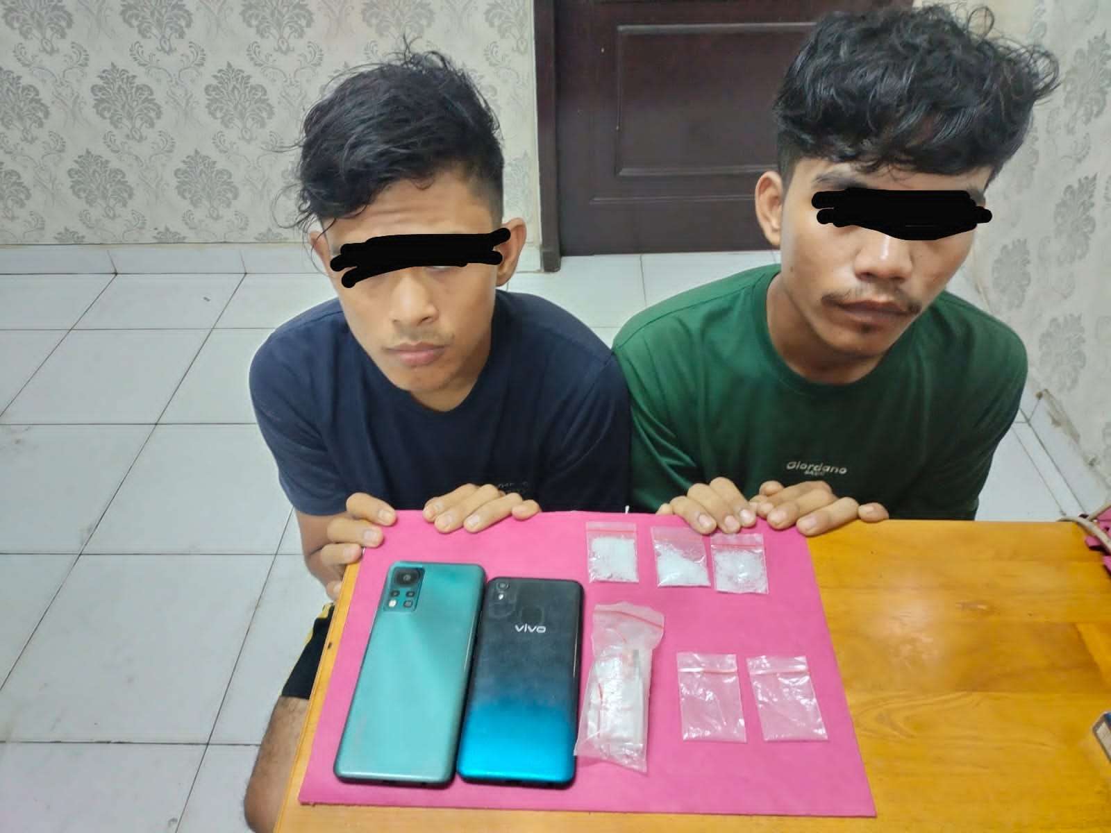Pada hari Senin 01 April 2024 sekira jam 22 .00 Wib membuahkan hasil dengan dilakukan penangkapan Dua orang laki laki yang berinisial FASD als F dan AA Als B , setelah dilakuka penangkapan dan penggeledahan terhadap FASD Als F di dapati di saku kantong celana yang di pakai di dapati 3 bungkus narkotika yang diduga Shabu Shabu dan diakui sebagai miliknya yang dibungkus dengan plastik klip bening yang didapat dari AMK ( DPO ) . Adapun peran AA Als B sebagai kurir penjualan barang haram tersebut .