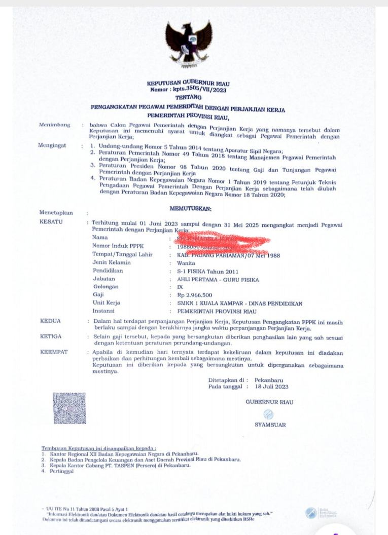Guru SMK Negeri 3 SK P3K Tahun 2023 di Pekanbaru Melanggar Aturan yang Telah Ditetapkan