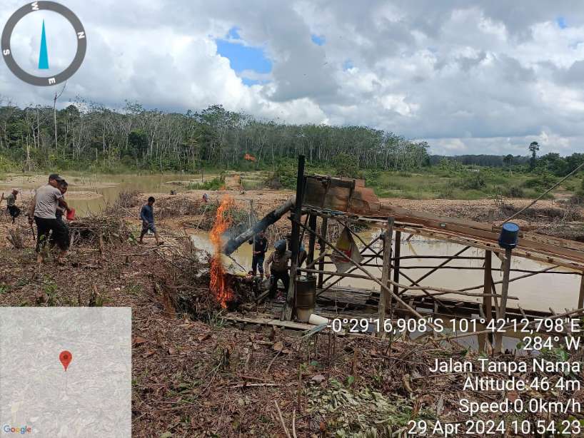 Liputan106.com | KUANTANSINGINGI,- Polsek Kuantan Hilir Kabupaten Kuansing melakukan tindakan penindakan terhadap aktivitas Penambangan Emas Tanpa Izin (PETI) di wilayah hukum Polsek Kuantan Hilir. Pada hari Senin (29/4/2024)