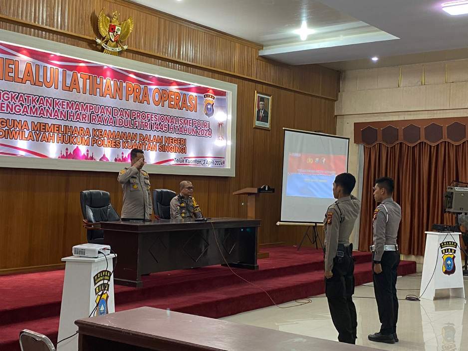 Liputan106.com | KUANTANSINGINGI,- Polres Kuansing telah menggelar Lat Pra Ops Ketupat Tahun 2024 di Gedung Sanika Satyawada. Pada hari Rabu (3/4/2024) pukul 13.00 WIB, Kegiatan tersebut dipimpin oleh Kapolres Kuansing, AKBP Pangucap Priyo Soegito, S.IK., M.H., dan dihadiri oleh sejumlah pejabat dan personel Polres Kuansing serta perwakilan masyarakat.