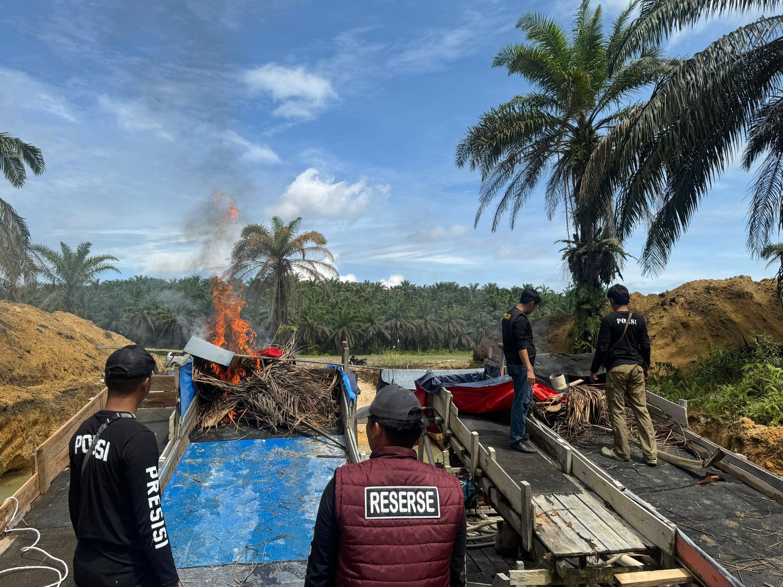 Namun, untuk mencegah agar tidak digunakan kembali oleh penambang dan menciptakan situasi yang kondusif, dua rakit tersebut langsung dimusnahkan dengan cara dirusak dan dibakar di tempat.