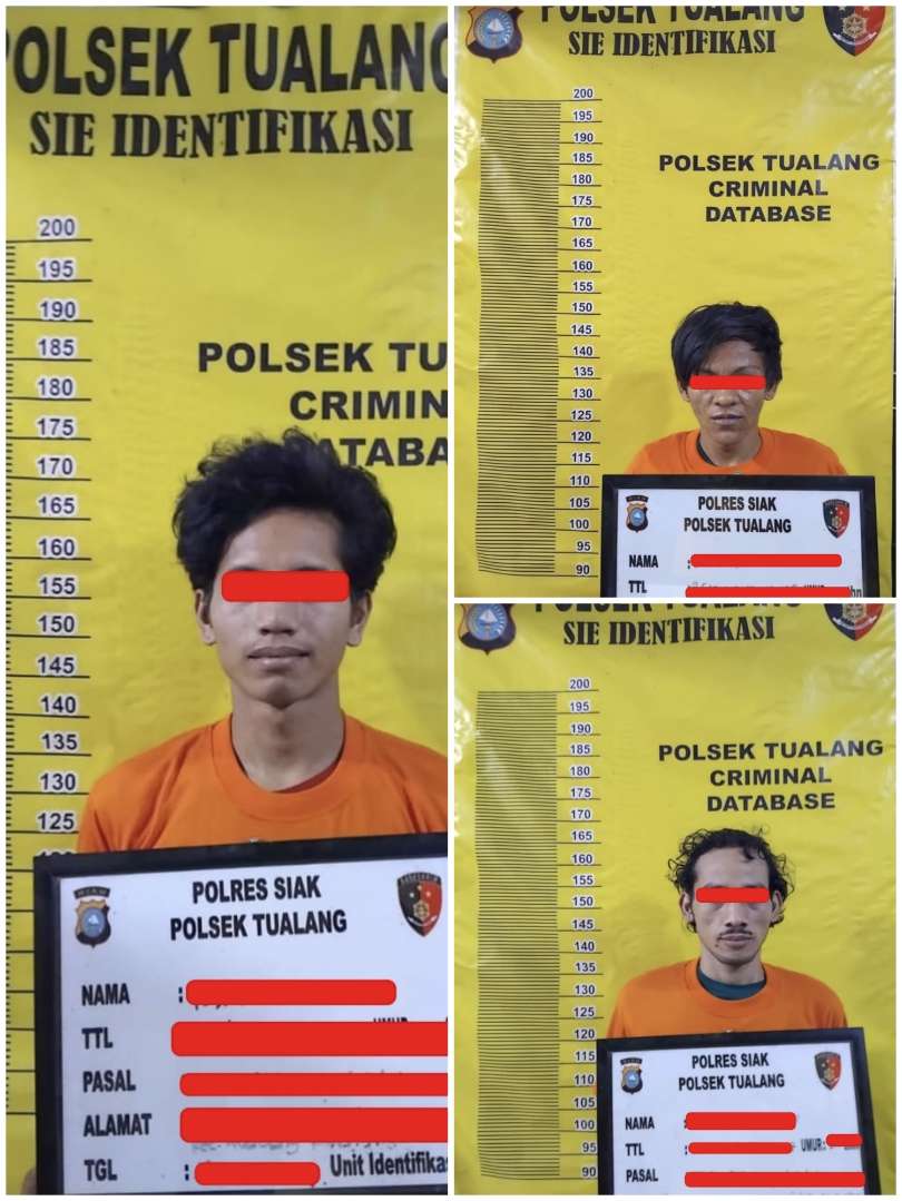 Pelaku yang diamankan oleh di Tim Opsnal Polsek Tualang Inisial *ZS Als D, 26Thn, YR, 22Thn, dan FRA, 25Thn ke 3 pelaku merupakan warga Kelurahan Kec. Tualang Kab. Siak.