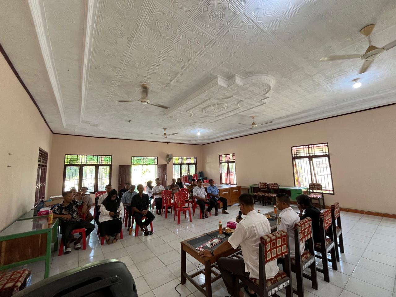 Penyerahan ambulans berlangsung di Kantor Desa Sukadamai, disaksikan Direktur BUMDes, Ketua Rukun Kematian Sugianto, Ketua BPD Slamet Abdiono, perangkat desa, dan tokoh masyarakat.